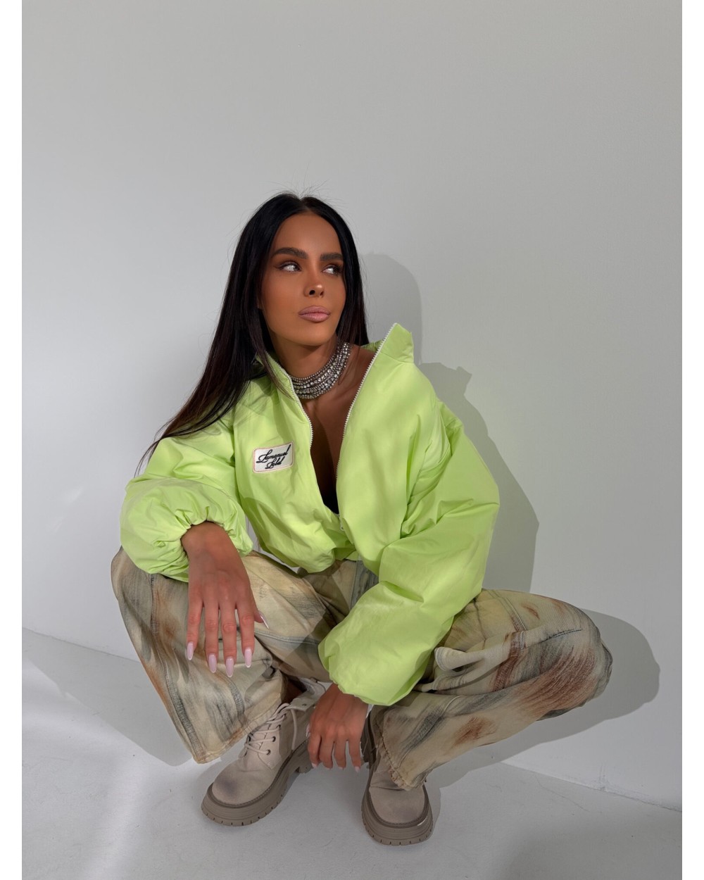 Lekka kurtka wiosenna, która robi efekt od pierwszego założenia. Oversize’owa forma z obniżoną linią ramion i podwyższonym kołnierzem buduje wyrazistą, pewną sylwetkę. Dół delikatnie zbiera się w bombkę, dzięki czemu całość ma modowy, dopracowany kształt, a nie zwykłą, sportową formę. Materiał jest lekki, miękko pracuje w ruchu i daje ten charakterystyczny, nowoczesny look. Mocny kolor przyciąga uwagę i podbija stylizację bez wysiłku. To model dla dziewczyny, która lubi wyglądać wyraziście i nie znika w tłumie.