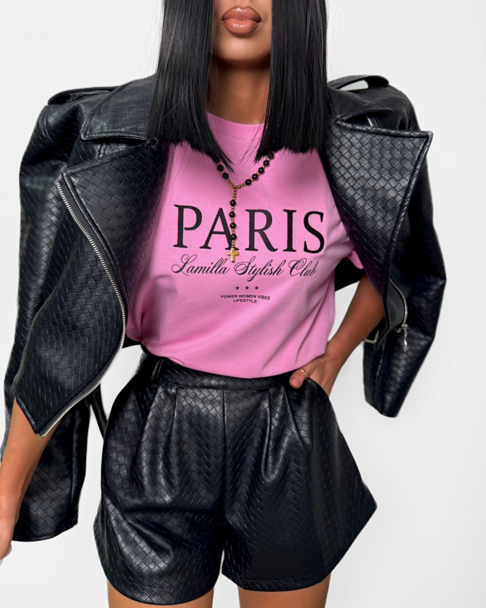 - Piękna, krótka kurtka ramoneska wykonana z wysokiej jakości eco skóry