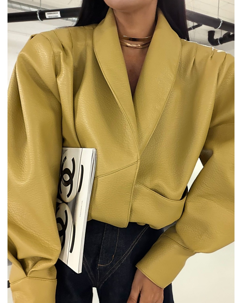 Elegancka, krótka kurtka wykonana z wysokiej jakości ekoskóry o delikatnej naturalnej fakturze. Model z klasycznymi klapami inspirowanymi marynarką, który łączy szykowny styl z nowoczesnym charakterem. Doskonała propozycja do codziennych i bardziej eleganckich stylizacji. Posiada zapięcie na napy.