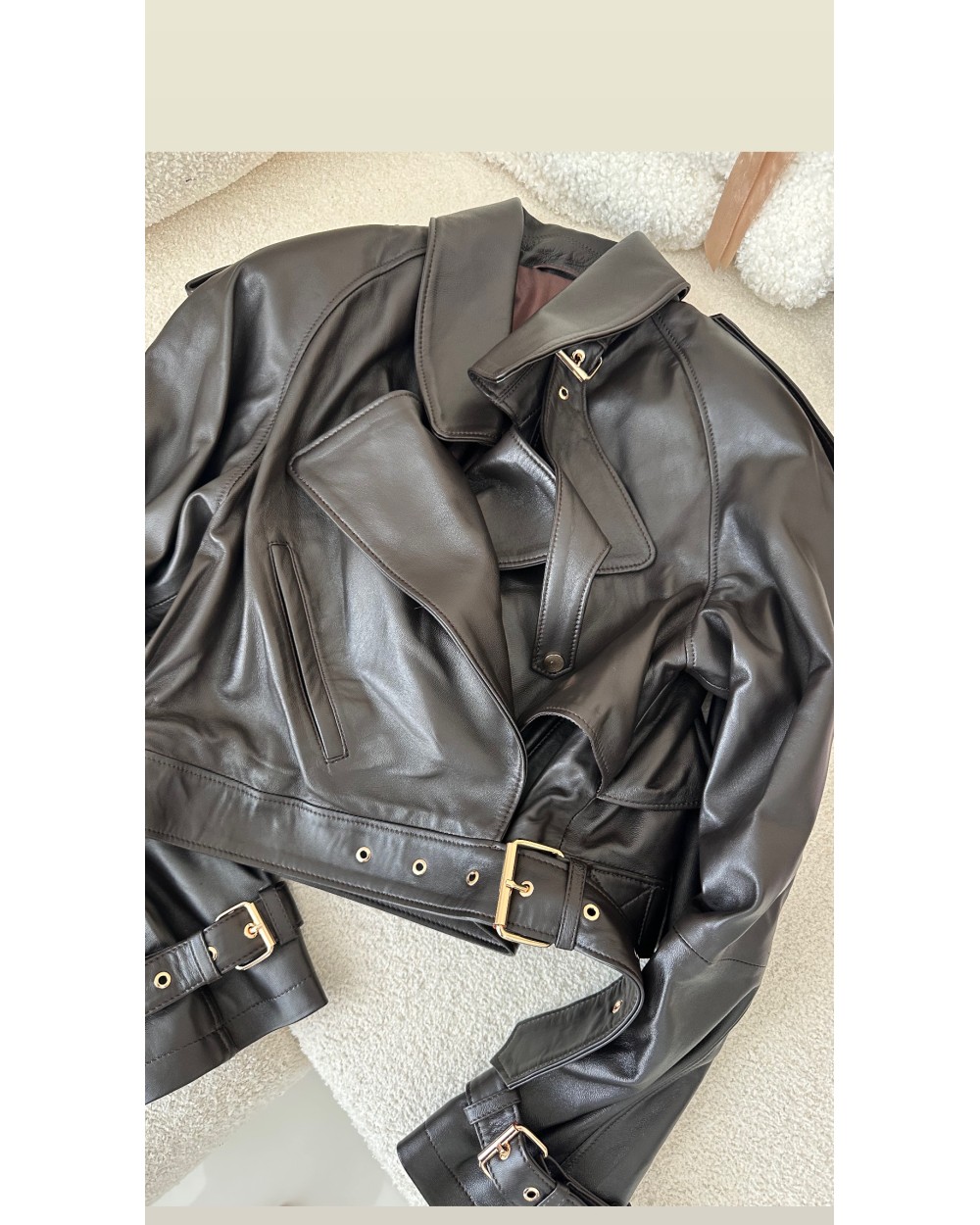 SKÓRZANA KURTKA MODEL YSL ZŁOTE OKUCIA