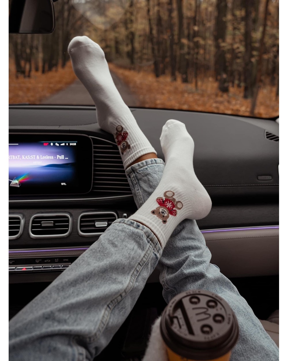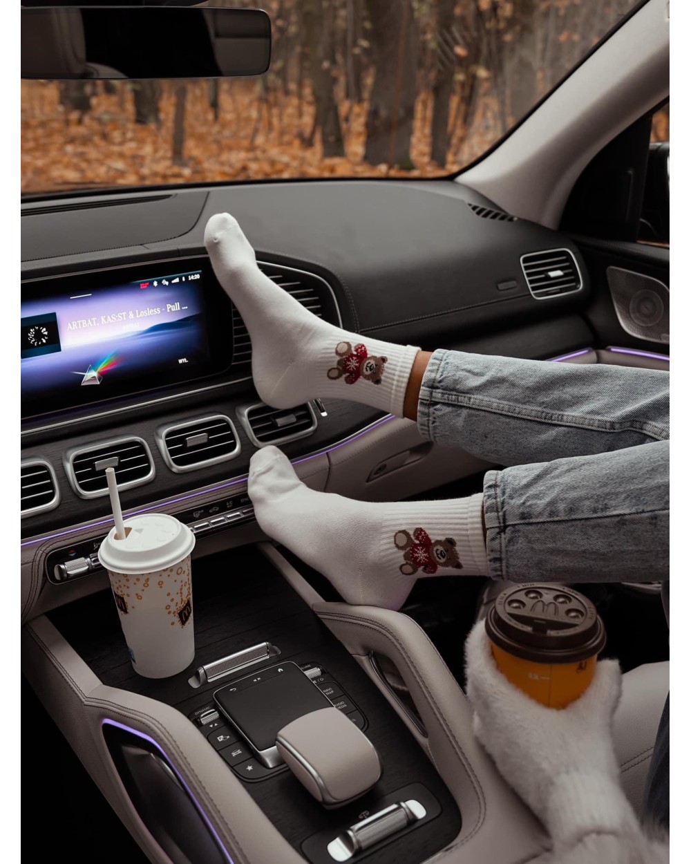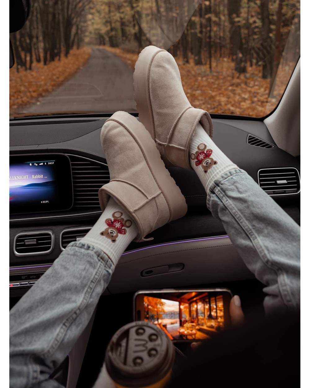 Damskie skarpetki z misiem w sweterku to uroczy i przytulny dodatek, który rozgrzeje Twoje stopy w chłodniejsze dni. Wykonane z miękkiej, elastycznej tkaniny, zapewniają maksymalny komfort i ciepło, idealne na zimowe wieczory. Skarpetki zdobi wesoły wzór misia ubranego w świąteczny sweterek, który wprowadza radosny, zimowy nastrój. Delikatne kolory i świąteczny motyw sprawiają, że te skarpetki świetnie sprawdzą się jako prezent dla bliskiej osoby lub jako dodatek, który doda uroku codziennej stylizacji. To idealny wybór na sezon świąteczny i zimowe wieczory!