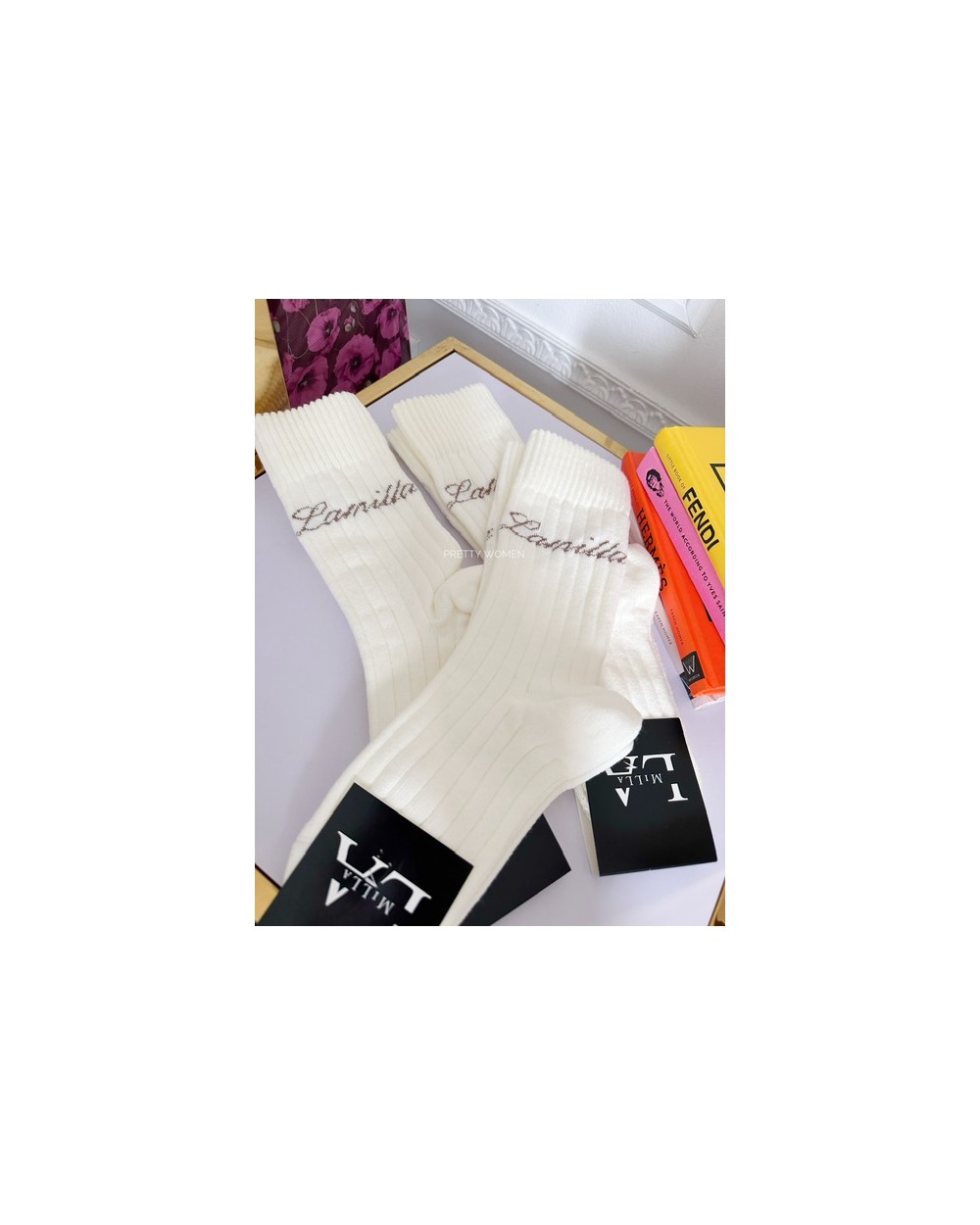 Skarpety dzianinowe od LaMilla w pastelowych kolorach ozdobione firmowym logo. Oryginalny produkt LaMilla