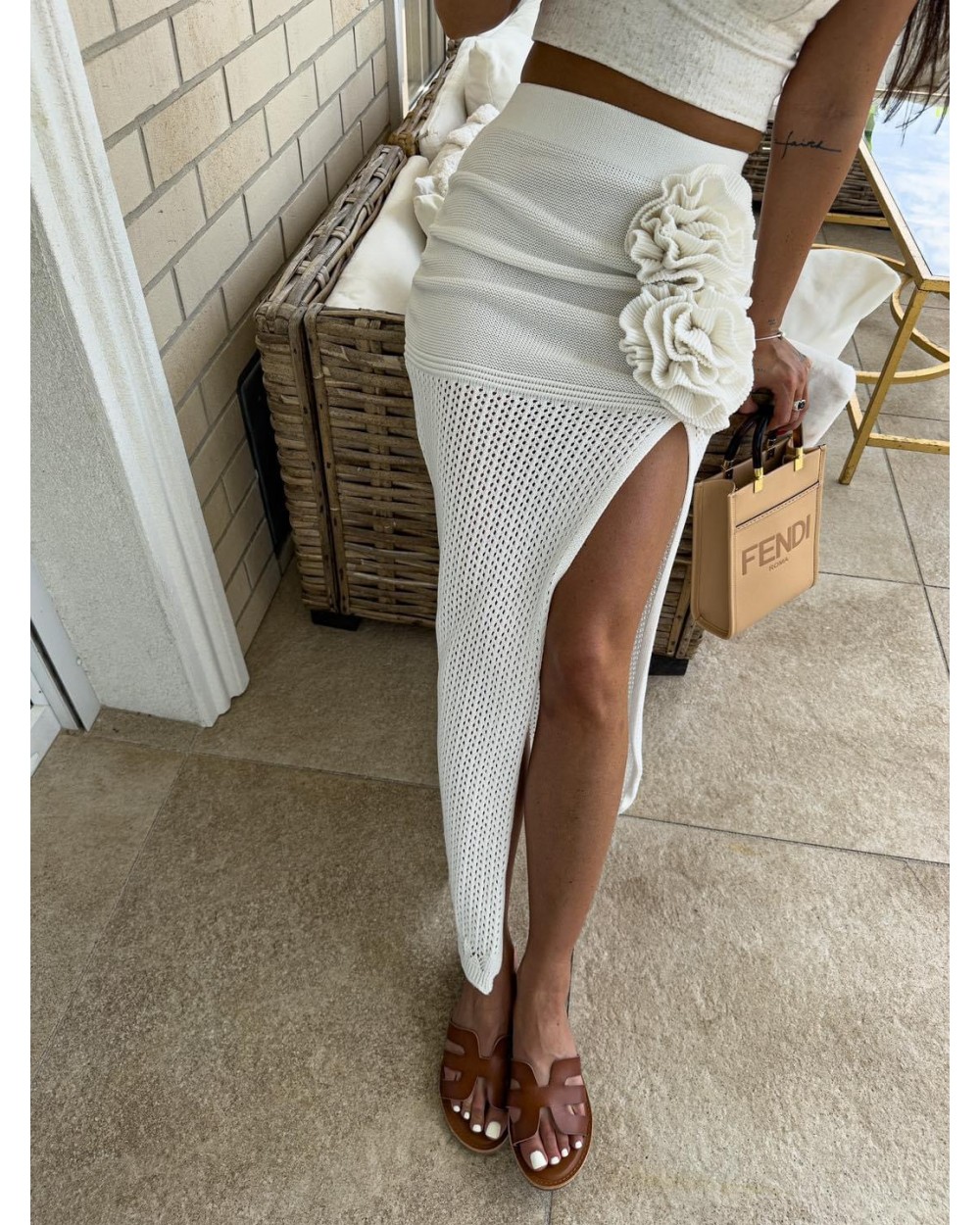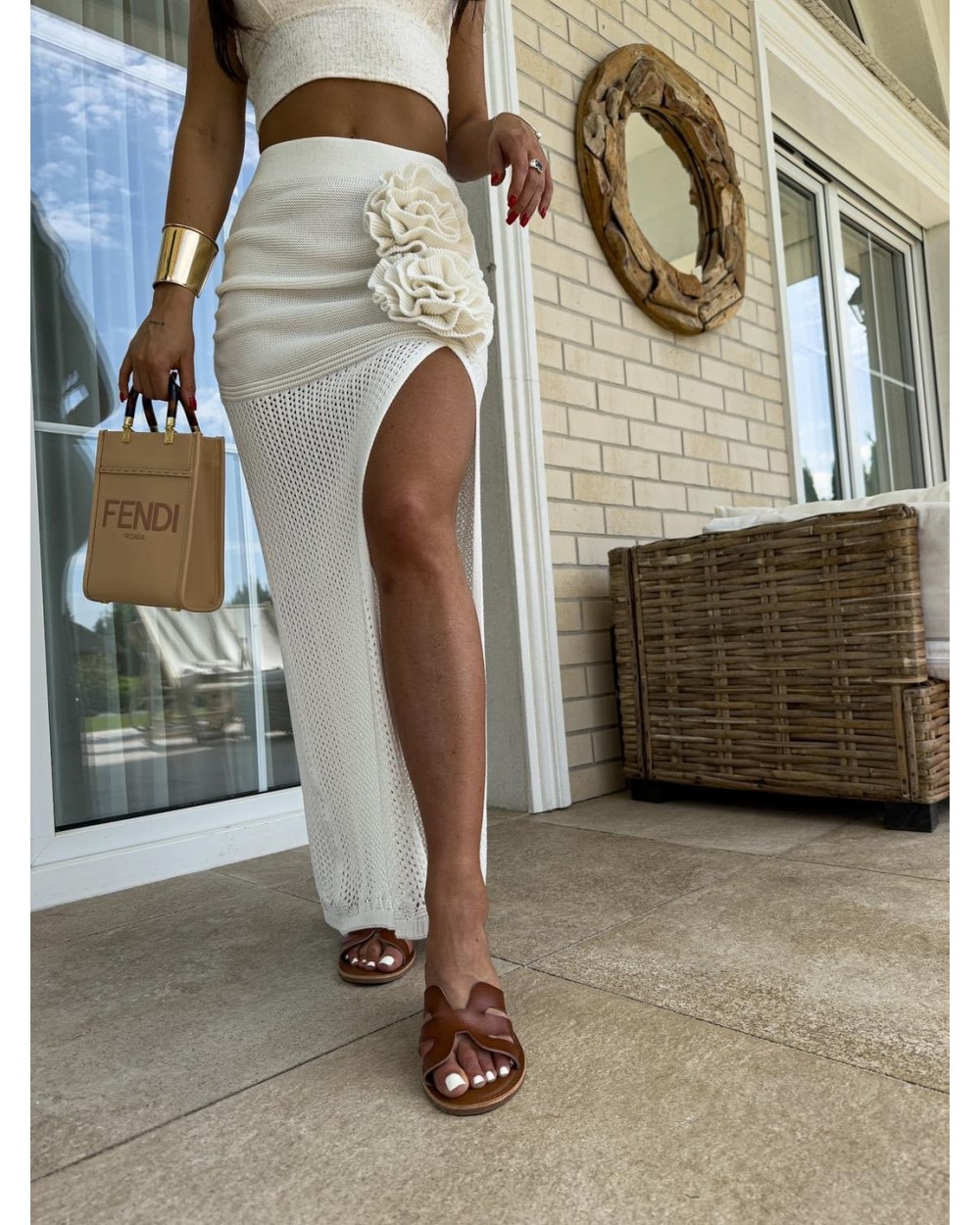 Spódnica ROSE z efektownym rozcięciem i pięknymi kwiatami. Kwiaty nie są odczepiane.