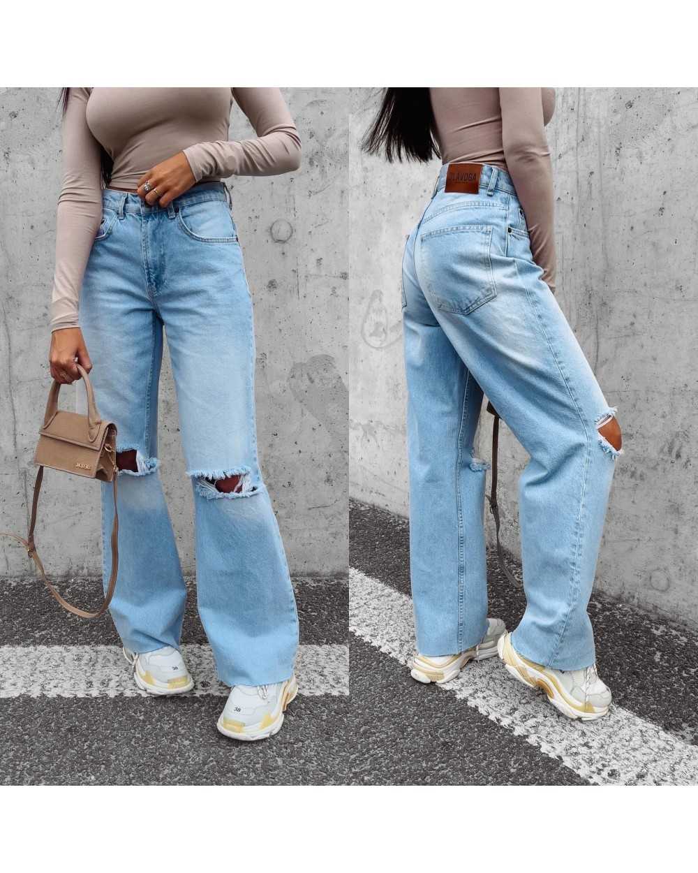 Szerokie jeansy Morgan 2023 od marki Ola Voga, to wybór dla kobiet, które cenią sobie modne akcenty w stylizacji. Jeansy posiadają wysoki stan oraz przetarcia na kolanach, co nadaje im charakteru i efetku. Model dzwonów z szeroką nogawką jest nie tylko modny, ale również optycznie wydłuża sylwetkę, dodając jej elegancji i proporcji. To spodnie, które nadadzą Twojemu wyglądowi wyjątkowego charakteru. Na tyle spodni znajduje się skórzana naszywka z logo OLAVOGA. Musisz je mieć!