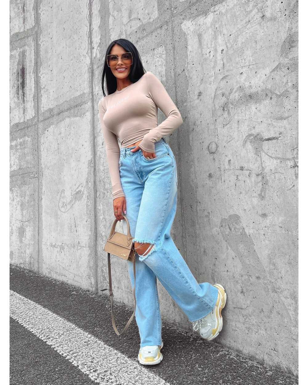 Szerokie jeansy Morgan 2023 od marki Ola Voga, to wybór dla kobiet, które cenią sobie modne akcenty w stylizacji.  Jeansy posiadają wysoki stan oraz przetarcia na kolanach, co nadaje im charakteru i efetku.  Model dzwonów z szeroką nogawką jest nie tylko modny, ale również optycznie wydłuża sylwetkę, dodając jej elegancji i proporcji. To spodnie, które nadadzą Twojemu wyglądowi wyjątkowego charakteru. Na tyle spodni znajduje się skórzana naszywka z logo OLAVOGA. Musisz je mieć!