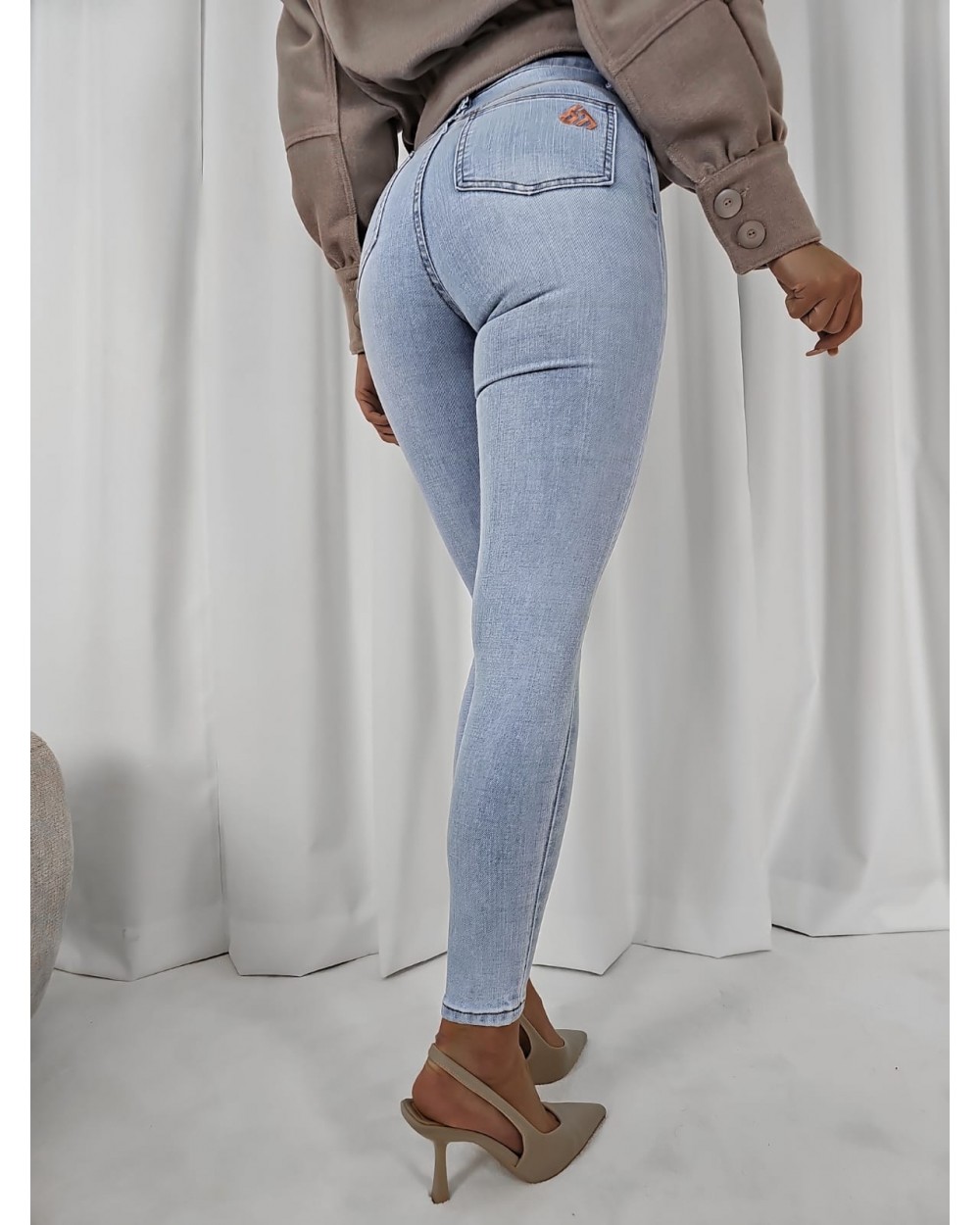 Jeansy sprawdzą się do wielu stylizacji. Zapinane na guzik. Posiadają szlufki oraz kieszenie z przodu i z tyłu. Na tylnej kieszeni wyhaftowane logo. Mocno elastyczne.