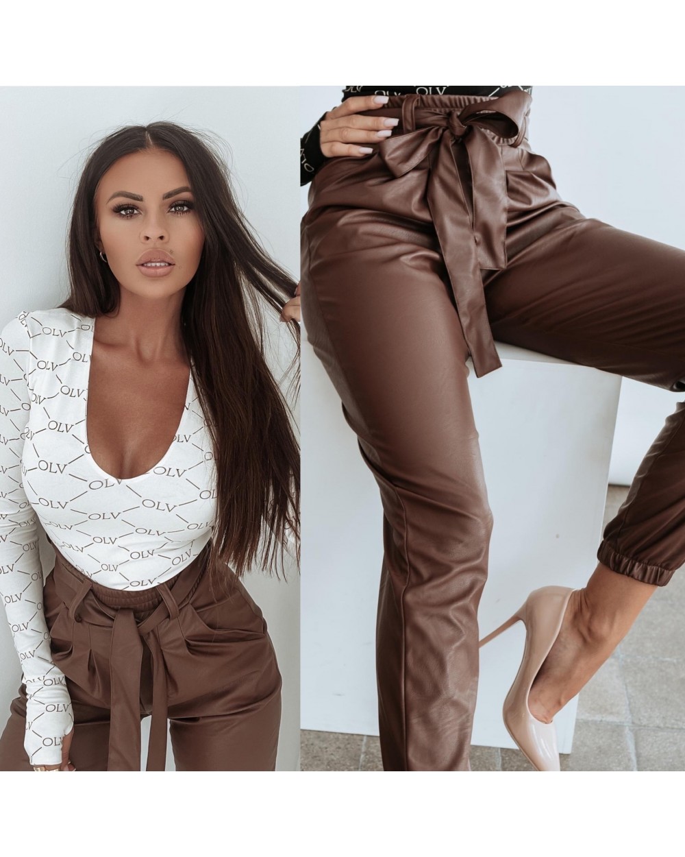 SPODNIE LAETHER WIĄZANE ▪️CZEKOLADOWE
