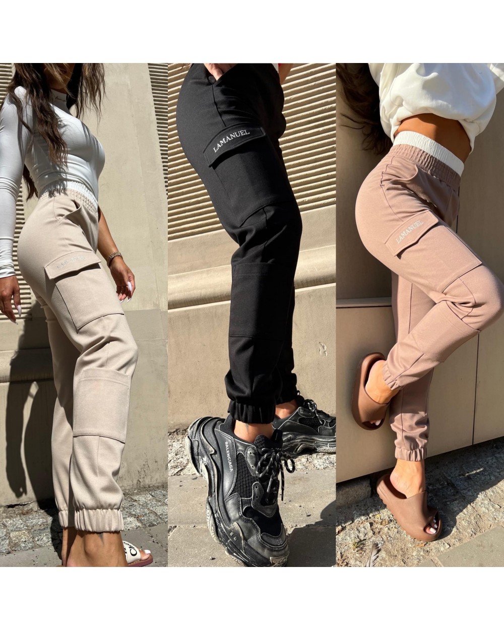 Stylowe bojówki damskie z intrygującym akcentem – podwójną gumą z przodu. To niezwykłe połączenie wygody, funkcjonalności i modnego designu, które dodadzą charakteru Twojej garderobie. Bojówki zostały wykonane materiałów, które nie tylko zapewniają komfort podczas noszenia, ale także idealne dopasowanie do sylwetki. Te bojówki to idealny wybór dla kobiet, które pragną wyrazić swoją indywidualność poprzez modę.