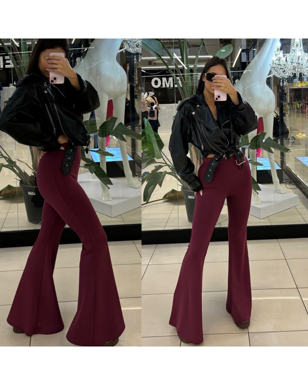 Dzwony elastyczne to wygodne spodnie o dopasowanym kroju, które rozszerzają się ku dołowi, podkreślając sylwetkę i zapewniając komfort noszenia. Dostępne są w dwóch długościach, w tym model klasyczny, idealny dla osób o wzroście około 165 cm