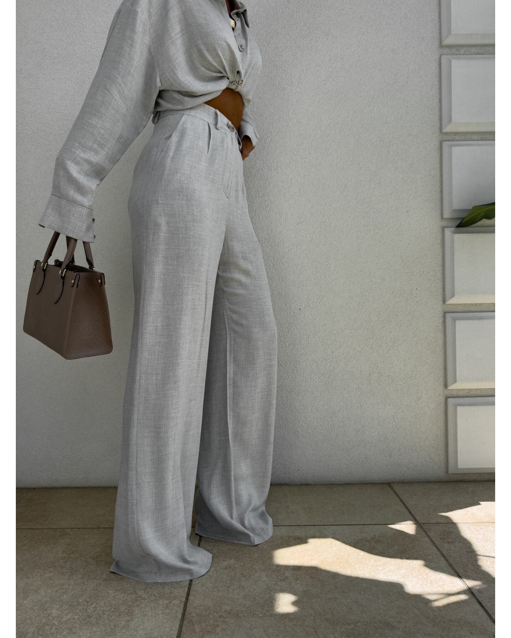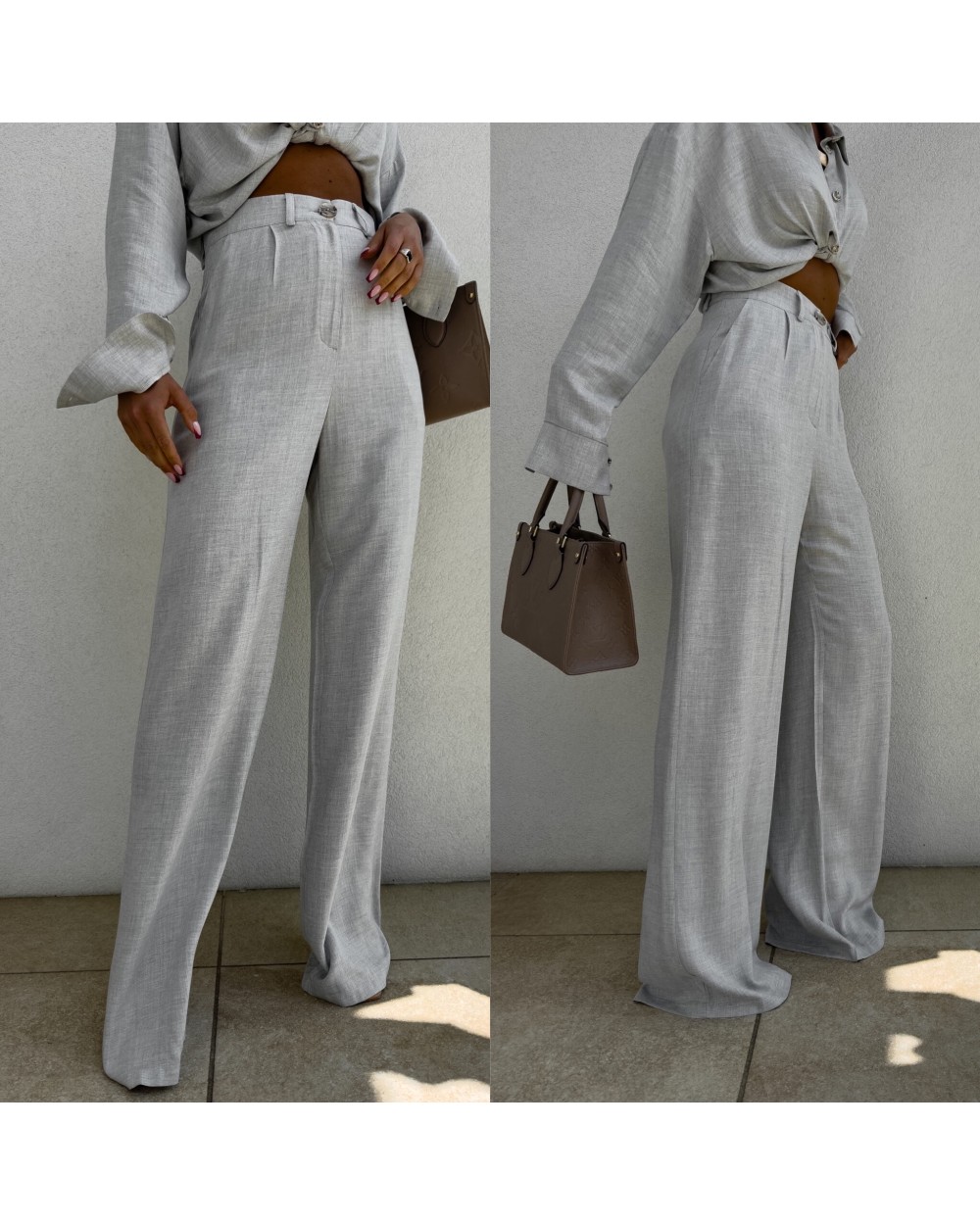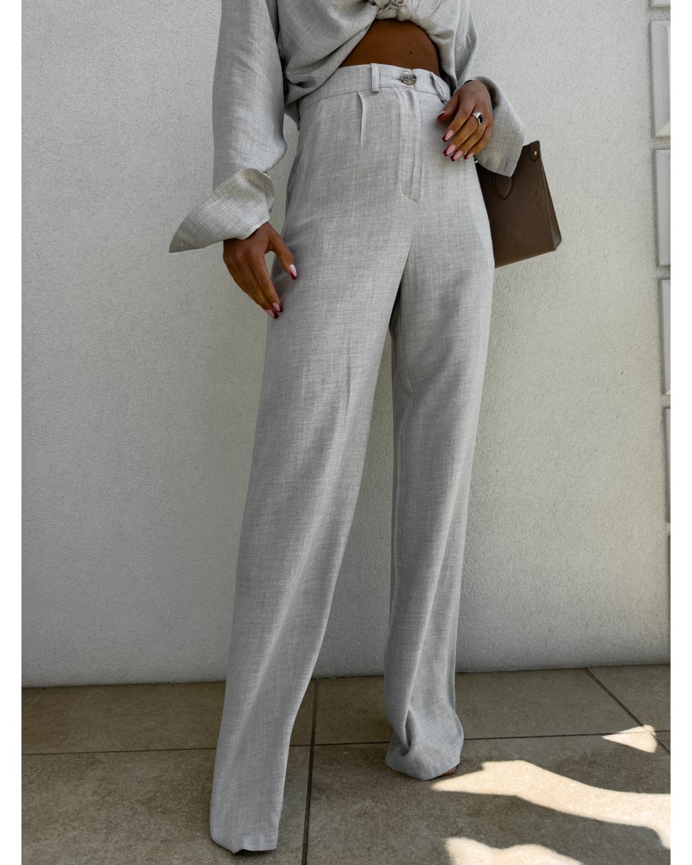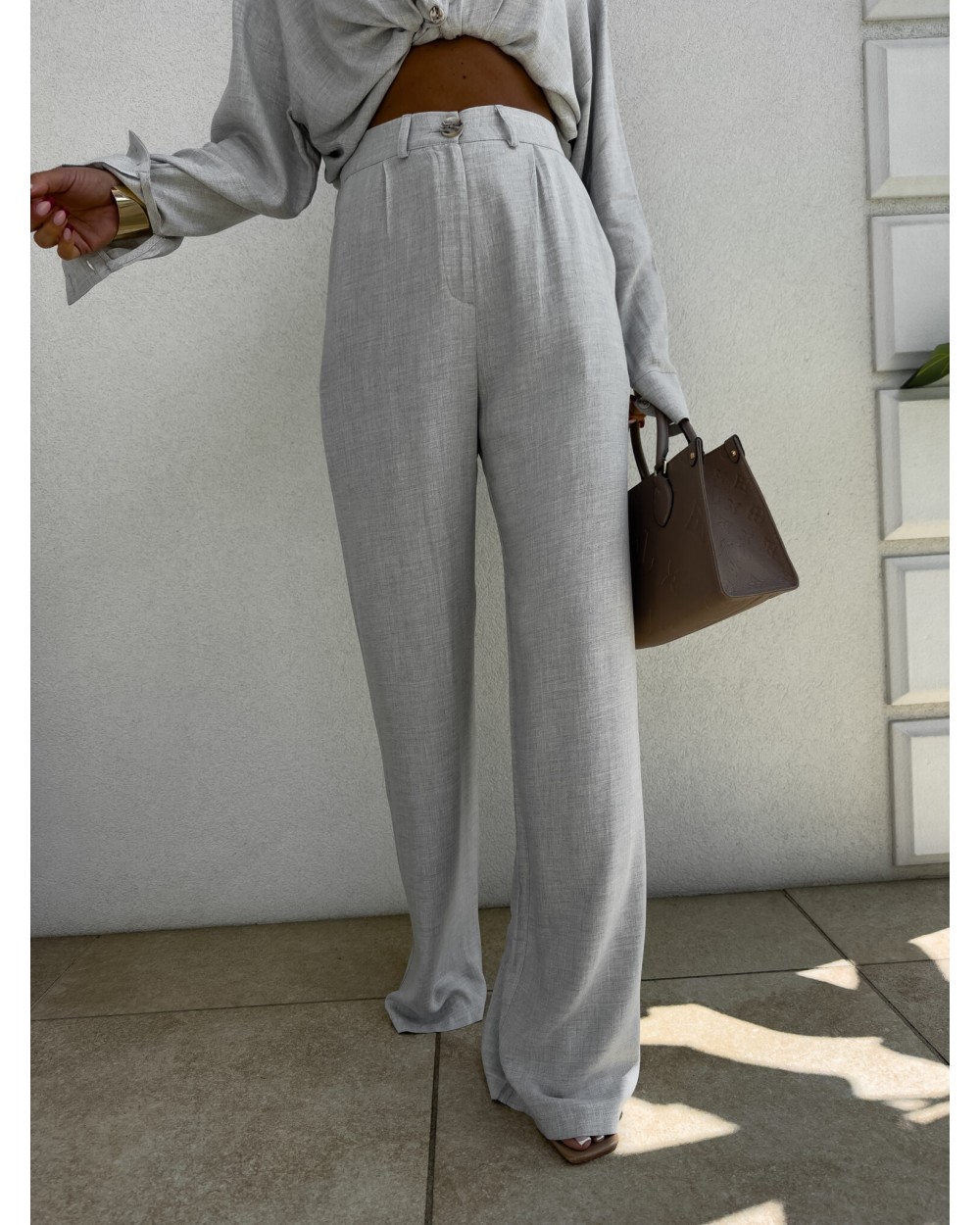 SPODNIE NATURAL LEN ▪️szaro-beż