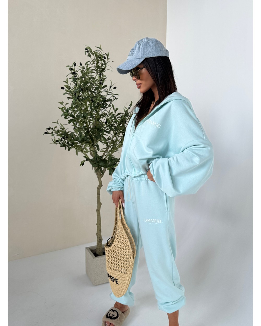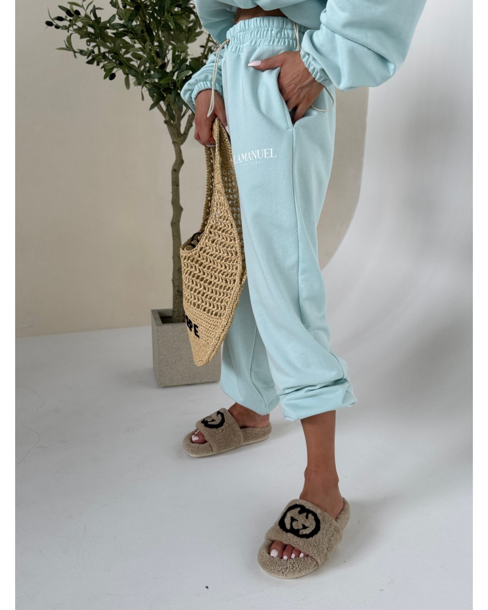 Szerokie spodnie dresowe, stylizowane na męskie z wysokim stanem i elastyczną gumką w pasie oraz dodatkowym troczkiem do regulacji. Szeroka, prosta nogawka i wygodny krój zapewniają komfort noszenia i swobodę ruchów. Na biodrze widoczne logo LAMANUEL, które spójnie komponuje się z bluza CLOUDY. tworząc kompletny, modny zestaw. Spodnie mimo, że są szerokie pasują idealnie od rozmiaru XS-L.