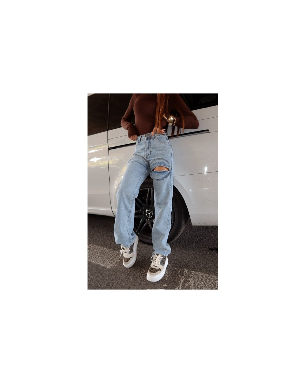 To nie są zwykłe jeansy — to manifest stylu. Klasyczny fason z wysokim stanem i luźną nogawką zyskał zupełnie nowy wymiar dzięki unikalnemu przeszyciu na udzie. To nie ozdoba, to funkcjonalny detal – wystarczy lekko odchylić materiał, a odsłania się zadziorne wycięcie. Niby klasyk, ale z ukrytą niespodzianką. Denim dla tych, którzy nie boją się mody z charakterem.
