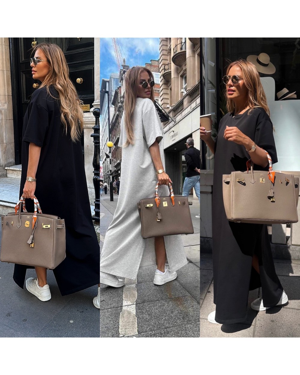 - Długa, swobodna sukienka wykonana z miękkiej bawełny, co sprawia, że jest wygodna w noszeniu. Sukienka posiada dwie kieszenie oraz rocięcia po obu stronach nadające sukienkce lekkości.