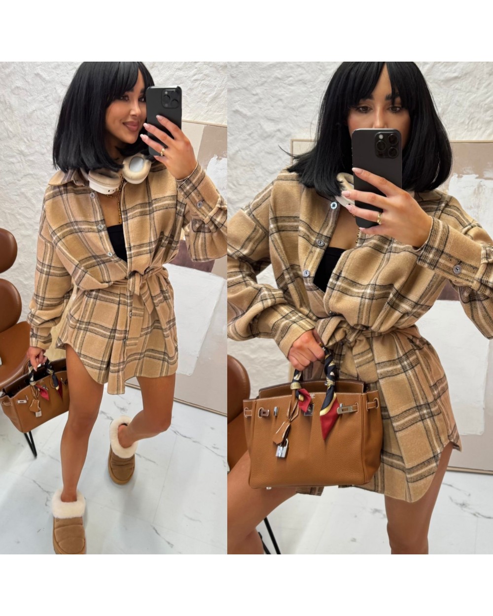 - Piękna flanelowa sukienka/koszula oversize w kratę