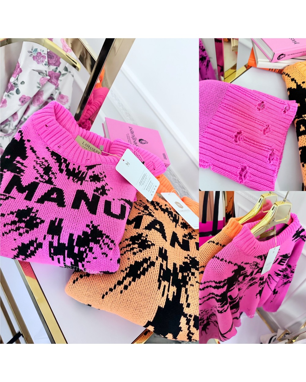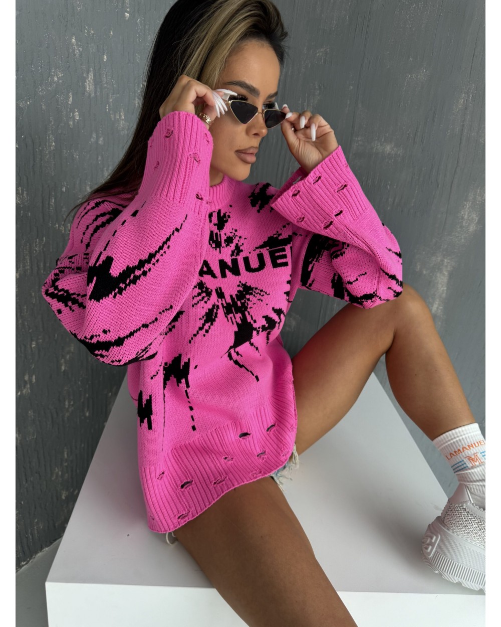 Nasz nowy sweter to wyjątkowy i stylowy element garderoby, który wyróżnia się nie tylko lekko oversizowym krojem, ale także unikalnym efektem chlapanej farby. Ten sweter doda niepowtarzalnego charakteru Twojemu outfitowi! Sweter posiada długi rękaw , a także dekolt w łódkę. Efektowne rozdarcia na końcach rękawów oraz na dole swetra sprawiają, że jest emanuje nowoczesnym, miejskim stylem. Subtelne dziurki dodają mu nieco ekstrawagancji, tworząc efekt “wow”, który przyciąga spojrzenia. To doskonały wybór dla osób poszukujących czegoś więcej niż zwykły sweter – to prawdziwe dzieło sztuki w świecie mody.