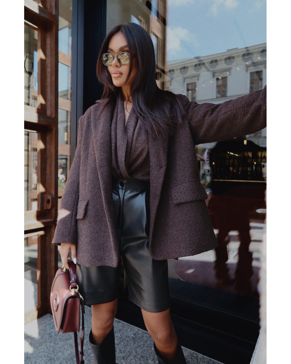 Miękki kardigan o swobodnym, nieco oversize’owym kroju, który możesz nosić luźno lub lekko wpuszczony w spodnie, jeśli chcesz nadać sylwetce formy. Szerokie rękawy i strukturalna linia ramion nadają mu charakteru, a przyjemny w dotyku materiał otula jak ciepły szal. Idealny na chłodniejsze dni – wygląda stylowo bez wysiłku, niezależnie od tego, z czym go zestawisz. Pasuje od rozmiaru XXS do XL.