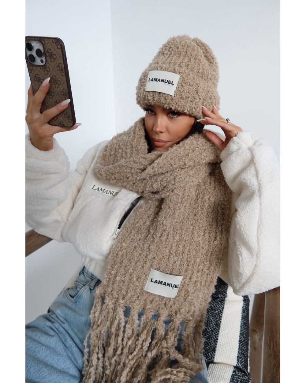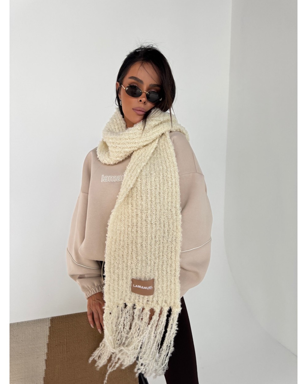 Mięsisty szalik z grubym splotem i długimi frędzlami. Wyróżnia się charakterystyczną fakturą i widoczną naszywką z logo. Otula szyję i dodaje stylu każdej zimowej stylizacji.