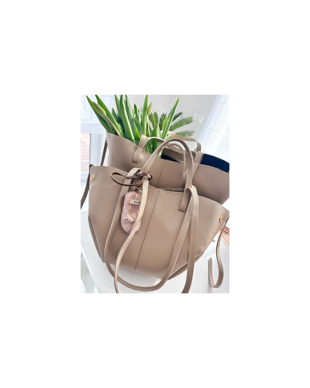 SKÓRZANA TOREBKA MID ▪️Beżowa