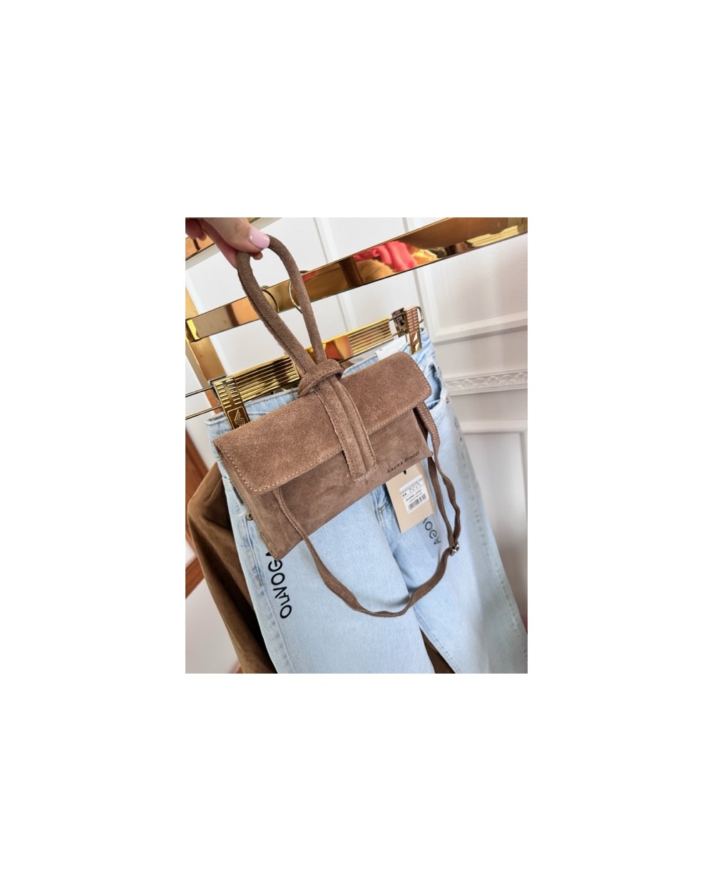 Elegancka skórzana torebka z pętelką to doskonały wybór na każdą okazję. Postaw na prostotę, która z łatwością uzupełni Twoje codzienne i wieczorowe stylizacje! Torebka dostępna w kilku wariantach kolorystycznych. Tutaj w kolorze taupe. - włoska skora naturalna zamszowa - odpinany pasek - wewnątrz kieszonki - podszewka