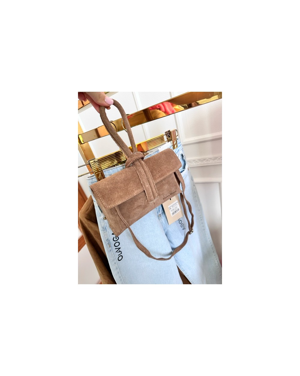 Elegancka skórzana torebka z pętelką to doskonały wybór na każdą okazję. Postaw na prostotę, która z łatwością uzupełni Twoje codzienne i wieczorowe stylizacje! Torebka dostępna w kilku wariantach kolorystycznych. Tutaj w kolorze taupe. - włoska skora naturalna zamszowa - odpinany pasek - wewnątrz kieszonki - podszewka