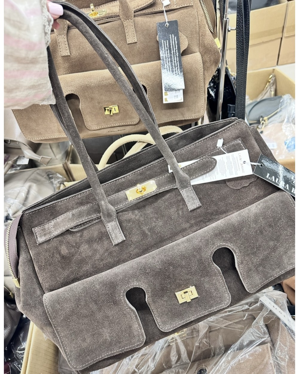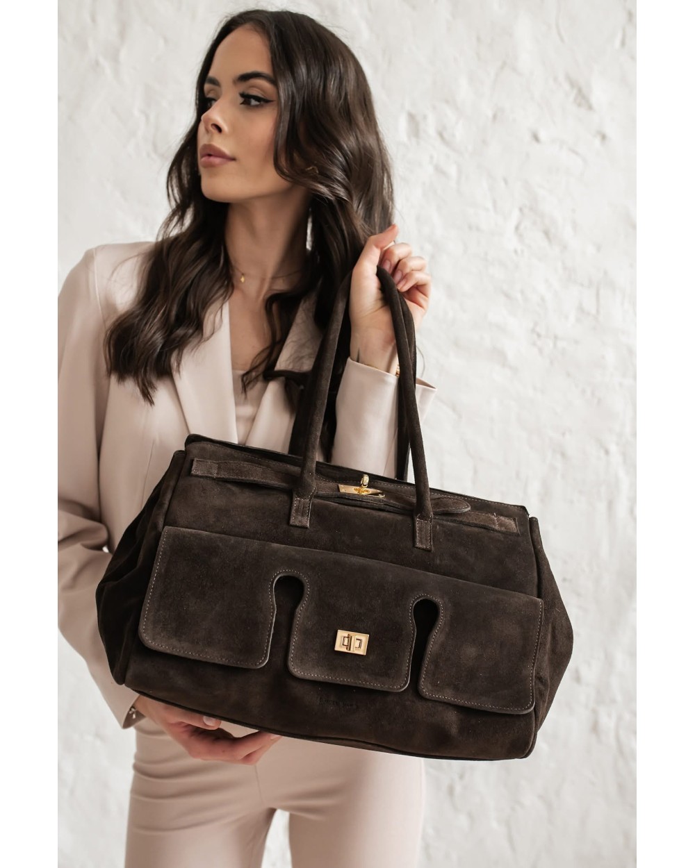 SKÓRZANA TOREBKA ZAMSZ ▪️czekolada